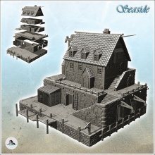 Medieval Building On Wooden Dock With Second Floor And Balcony (12) - Pirate Jungle Island Beach Piracy Caribbean Medieval Skull Renaissance