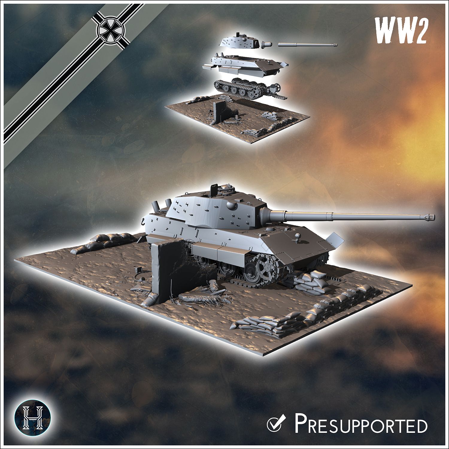 Carcass Of Panzer Vi Tiger Ii Ausf. B Tank (Henschel Turret) With Sandbags And Debris (2) - Germany Eastern Western Front Normandy Stalingrad Berlin Bulge WWII