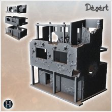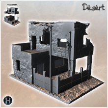 Ruined Modern Building With External Stairs And Demolished Terrace (18) - Canyon Sandy Landscape 28mm 15mm Rpg Dnd Nomad Desertland African Middle East