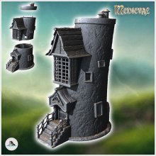 Large Round Tower With Paned Window And Railed Access Staircase (1) - Medieval Gothic Feudal Old Archaic Saga 28mm 15mm Rpg