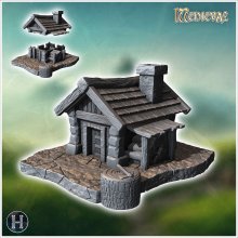 Medieval Building With Outdoor Fireplace, Two-Part Roof And Wooden Door (9) - Medieval Gothic Feudal Old Archaic Saga 28mm 15mm Rpg