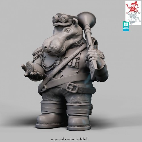 Giff are a Astral Plane-faring race of mercenaries, looking somewhat like humanoid hippopotami. They are shorter than ogres, but not by much, and physically they are quite powerful, on par with hill giants, with stocky and broad bodies and massive muscles.