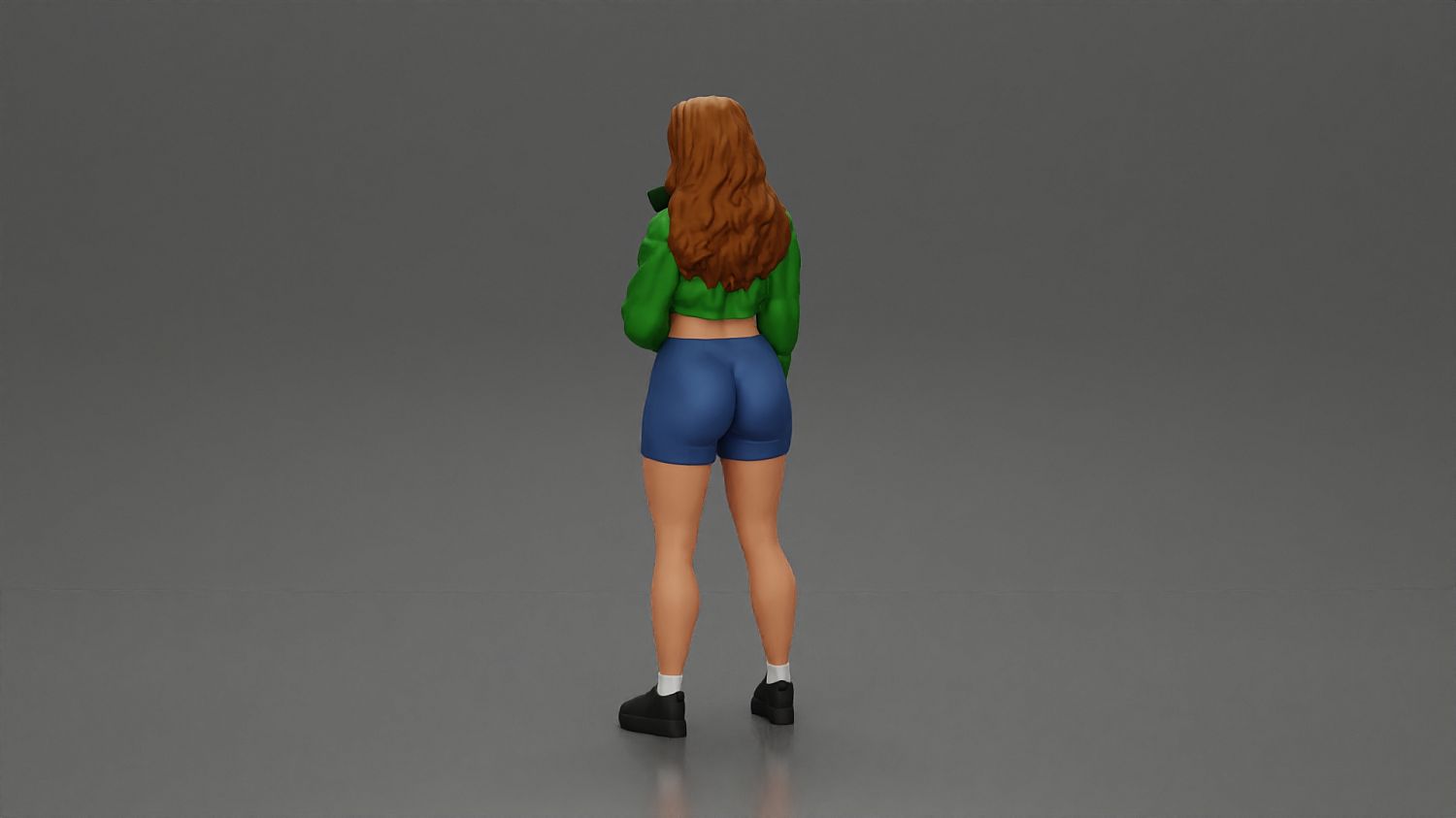 Sporty Happy Girl Standing In Mini Jacket And Short With Long Hair