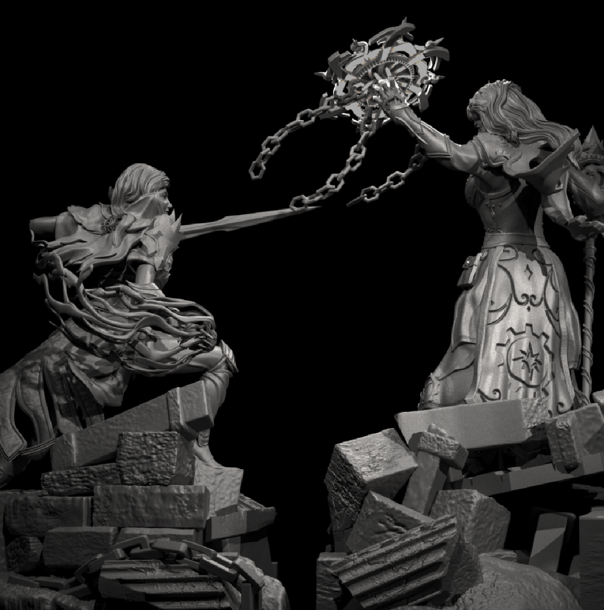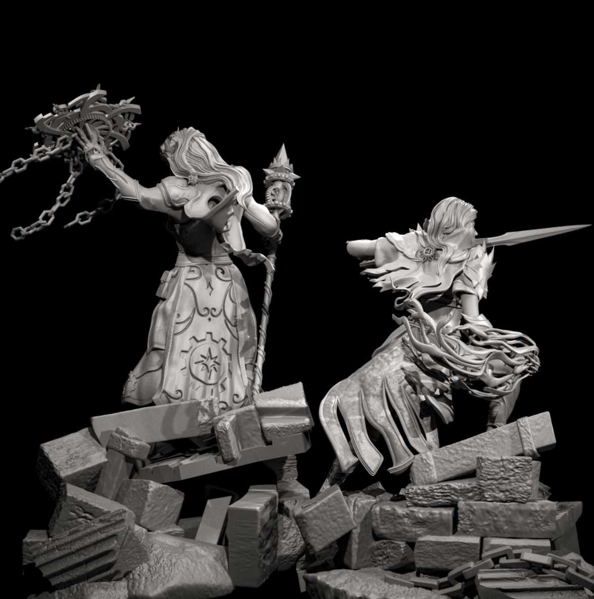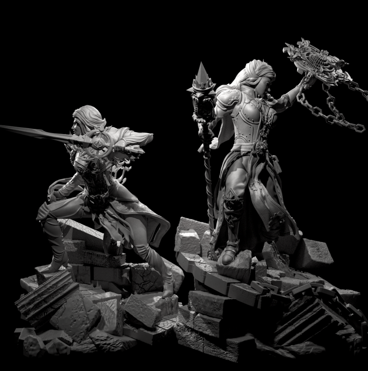 Two Separate Characters: The Sorceress and the Knight can be printed and displayed individually as standalone miniatures.