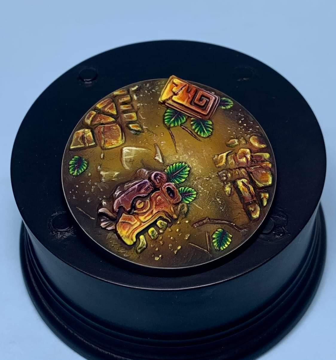2x65mm miniature bases decorated with Aztec symbol and patterns