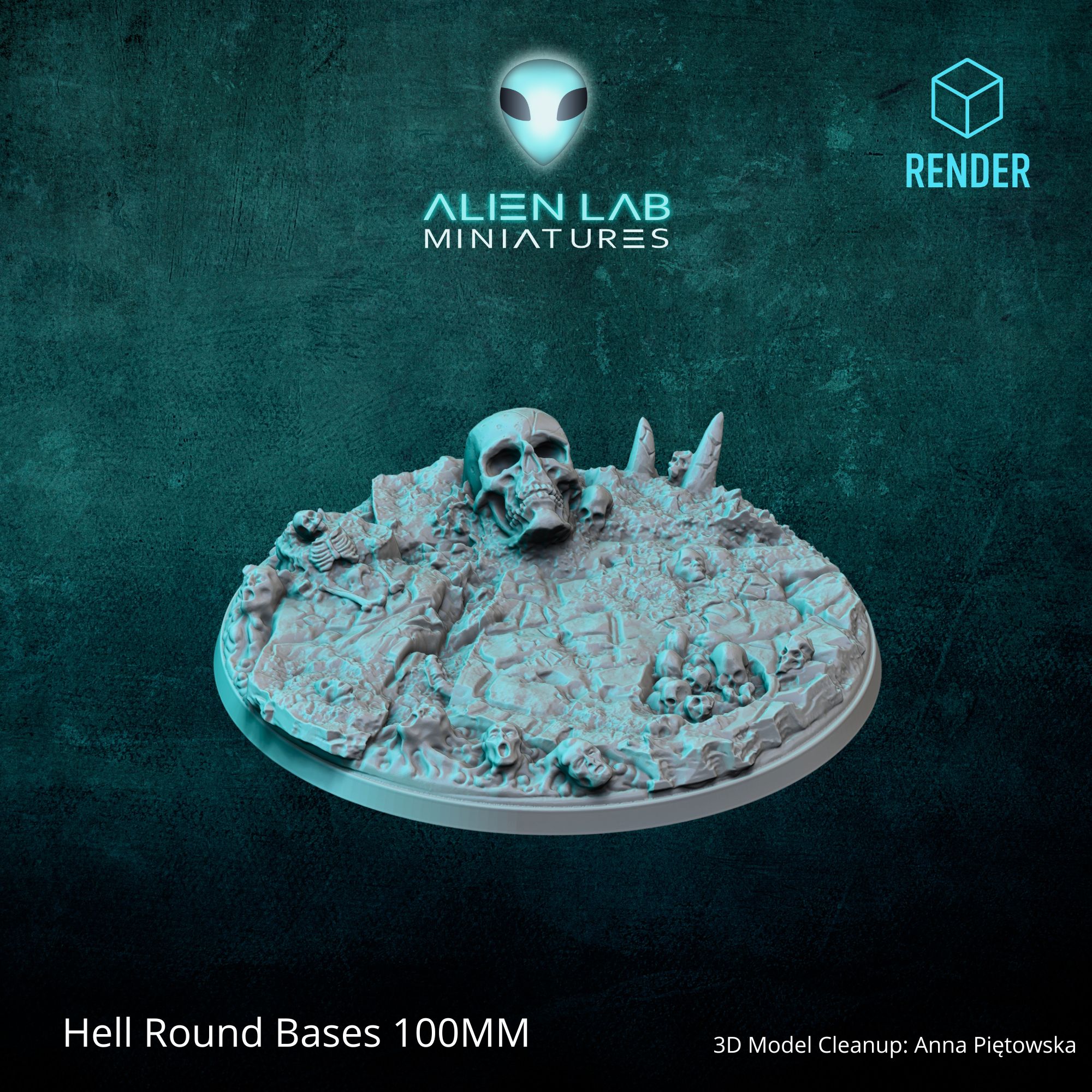 Each base is hand-sculpted with unique details — cracked ground, skulls, and corrupted rock formations — giving your miniatures a striking and atmospheric look.