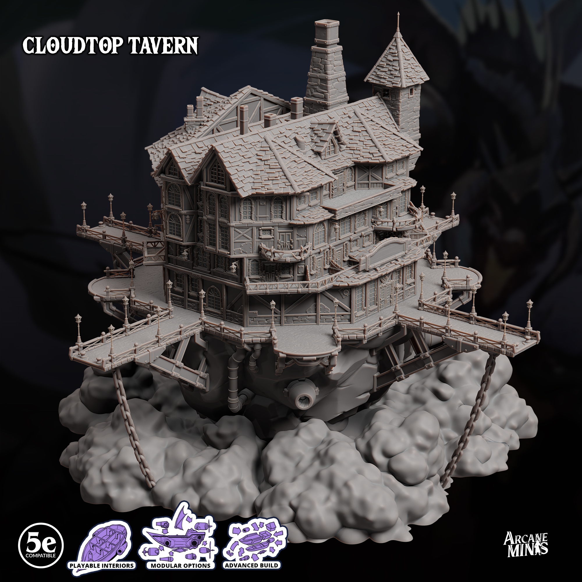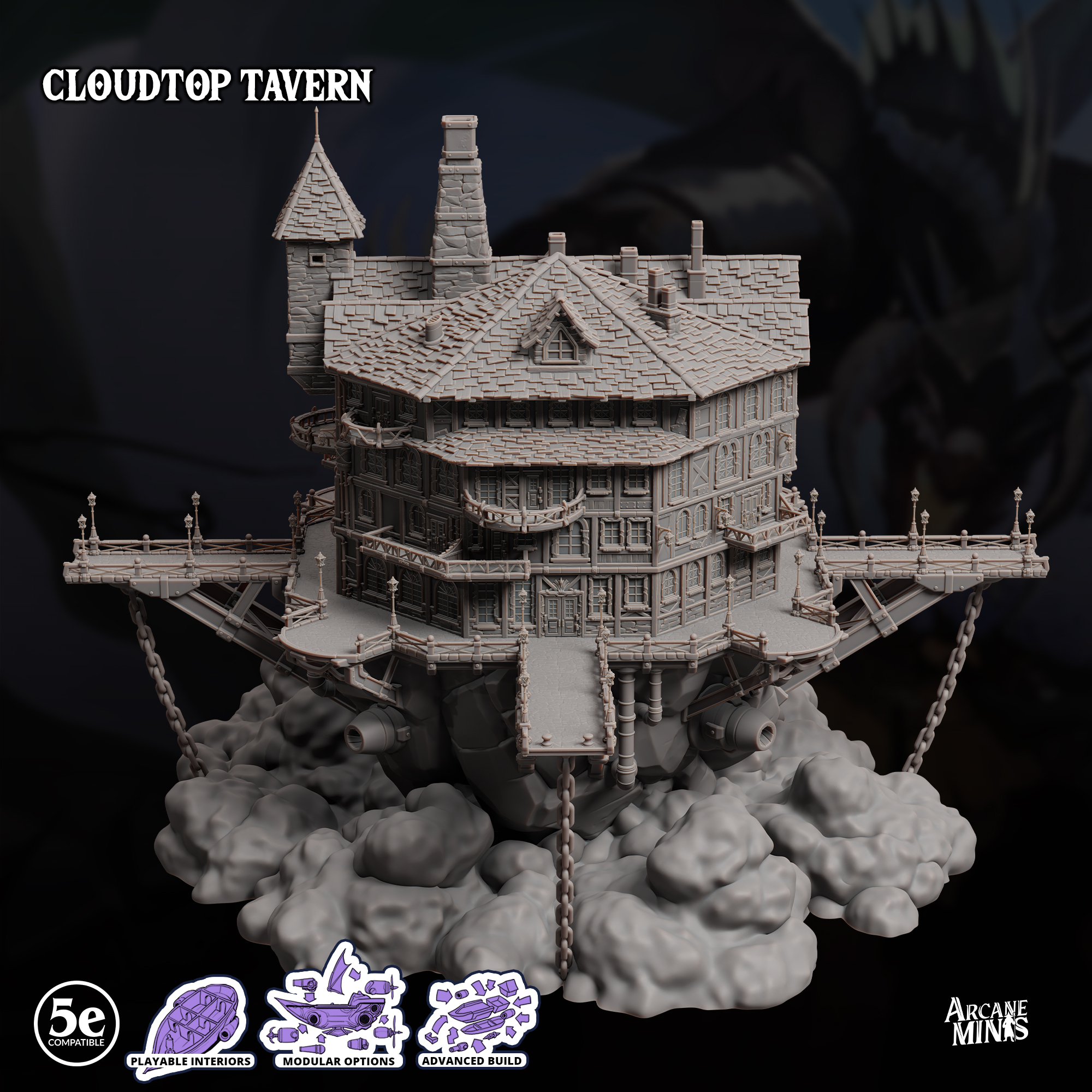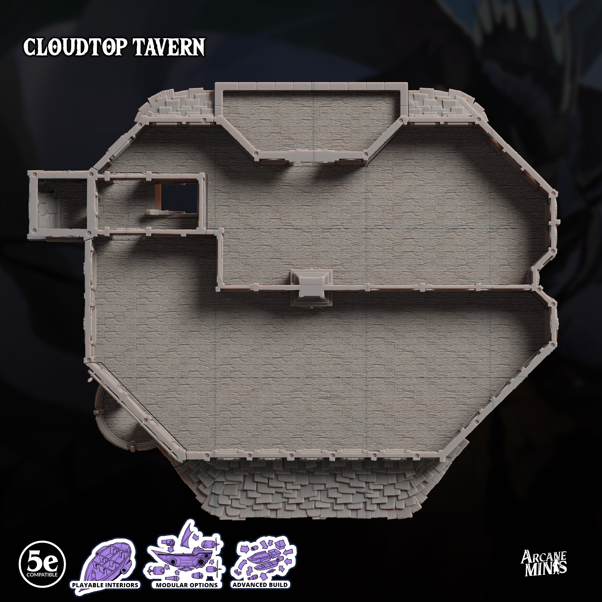 - Cloudtop Tavern (Playable) - (Medium FDM - Grid Version only released currently updates will add a non-grid cut, as well as a Small FDM and Medium Resin Cut both Grid and Non-Grid when they become available)