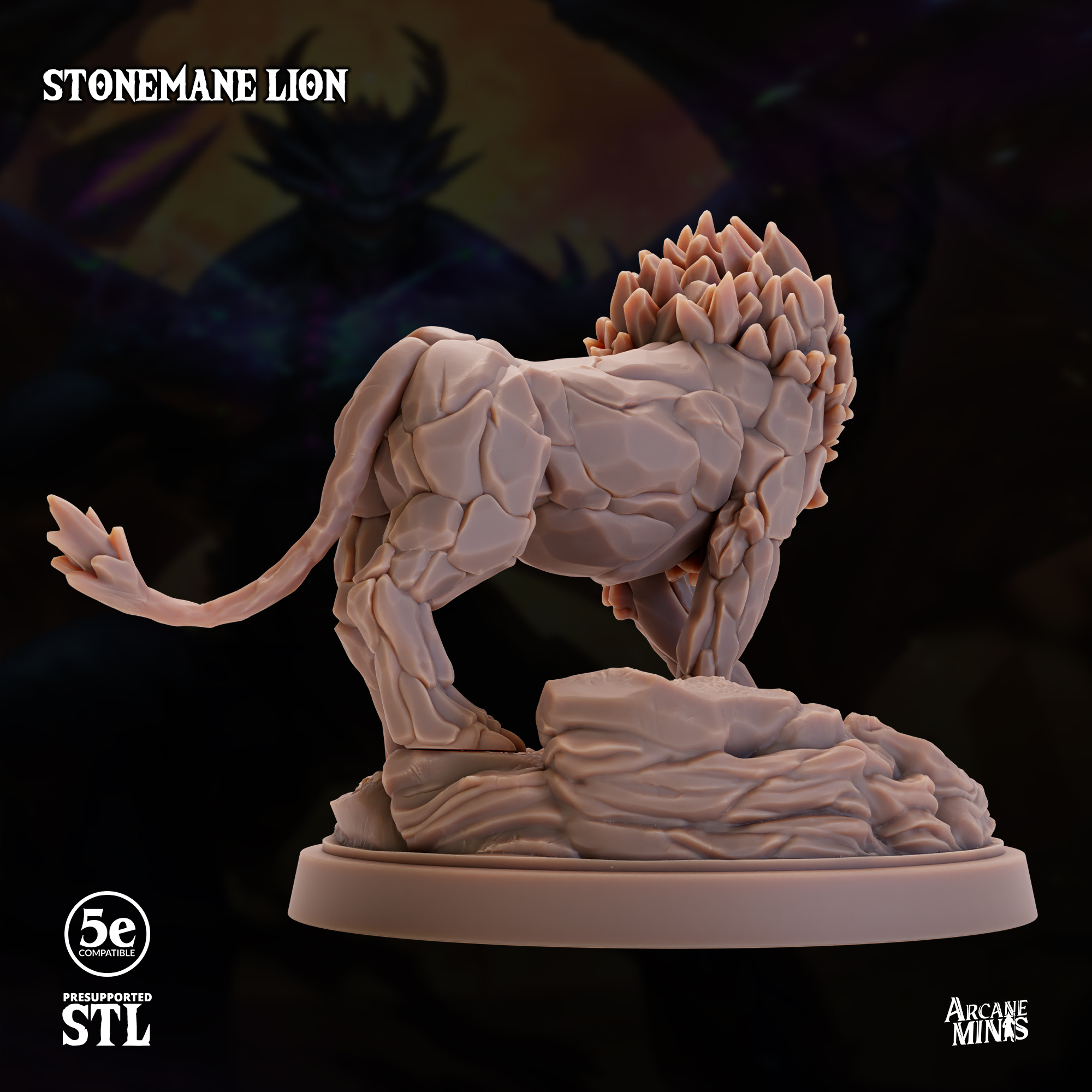 The Stonemane Lion from the Monster Madness #1 adventure, If you're interested in getting awesome monthly adventures, stls, maps and more check out our current monthly release here! (Subscribers get 50% off our entire MyMiniFactory store!)