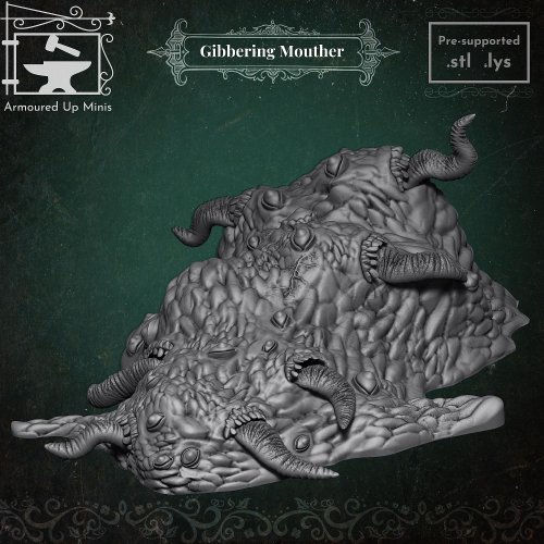 This is the supported version of our Gibbering Mouther miniature for use with Pathfinder, D&D or similar games. It is scaled for 32 mm, and ideal for resin printers. All of our files are available individually from MMF and Cults 3D, but to get 20+ pre-supported files each month, please visit our tribe or our Patreon page: https://www.patreon.com/ArmouredUpMinis
