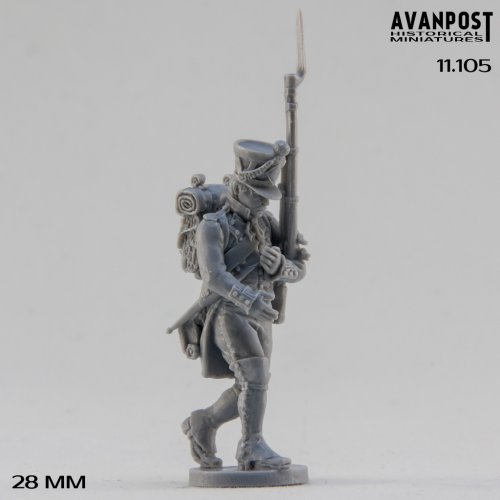 Фузилёр французской линейной пехоты в кивере, раненный на марше
