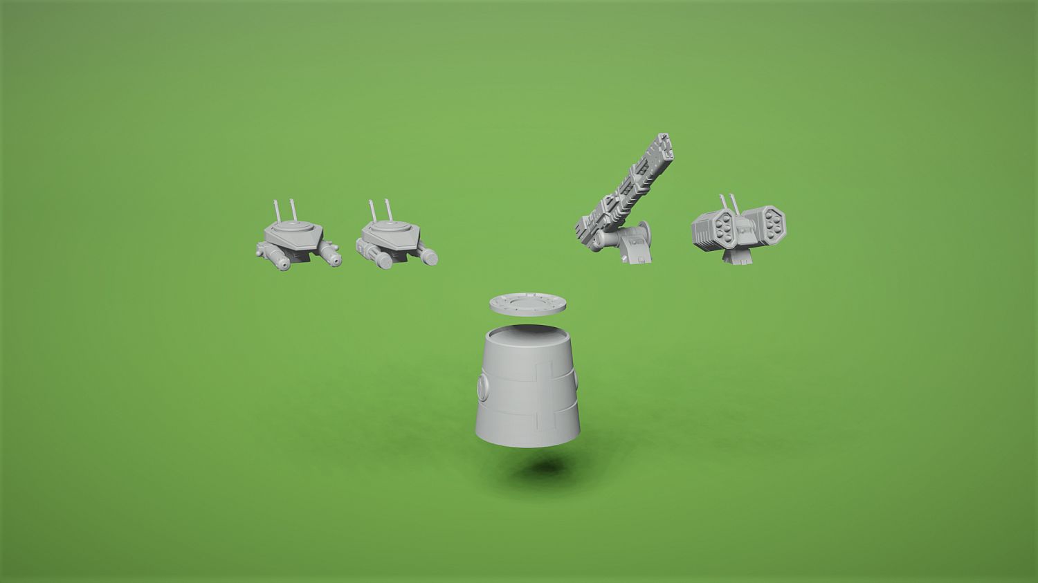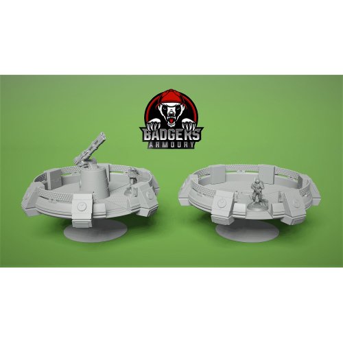 This model is great terrain for your Wayfairers Confederation troops. It can hold at least 10 25mm base models, plus more when the central turret isn't added. The Gun turret has four weapon options, rotates, and doesn't require glue! The platform hovers over the battlefield on a 80mm base.
