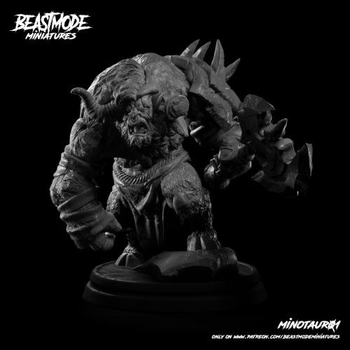 The armored minotaur is a massive, muscular war machine with horns jutting from its head. Wielding a huge axe and wearing a heavy armor, its eyes gleam with bloodlust and one should pity the poor heroes who are facing him.