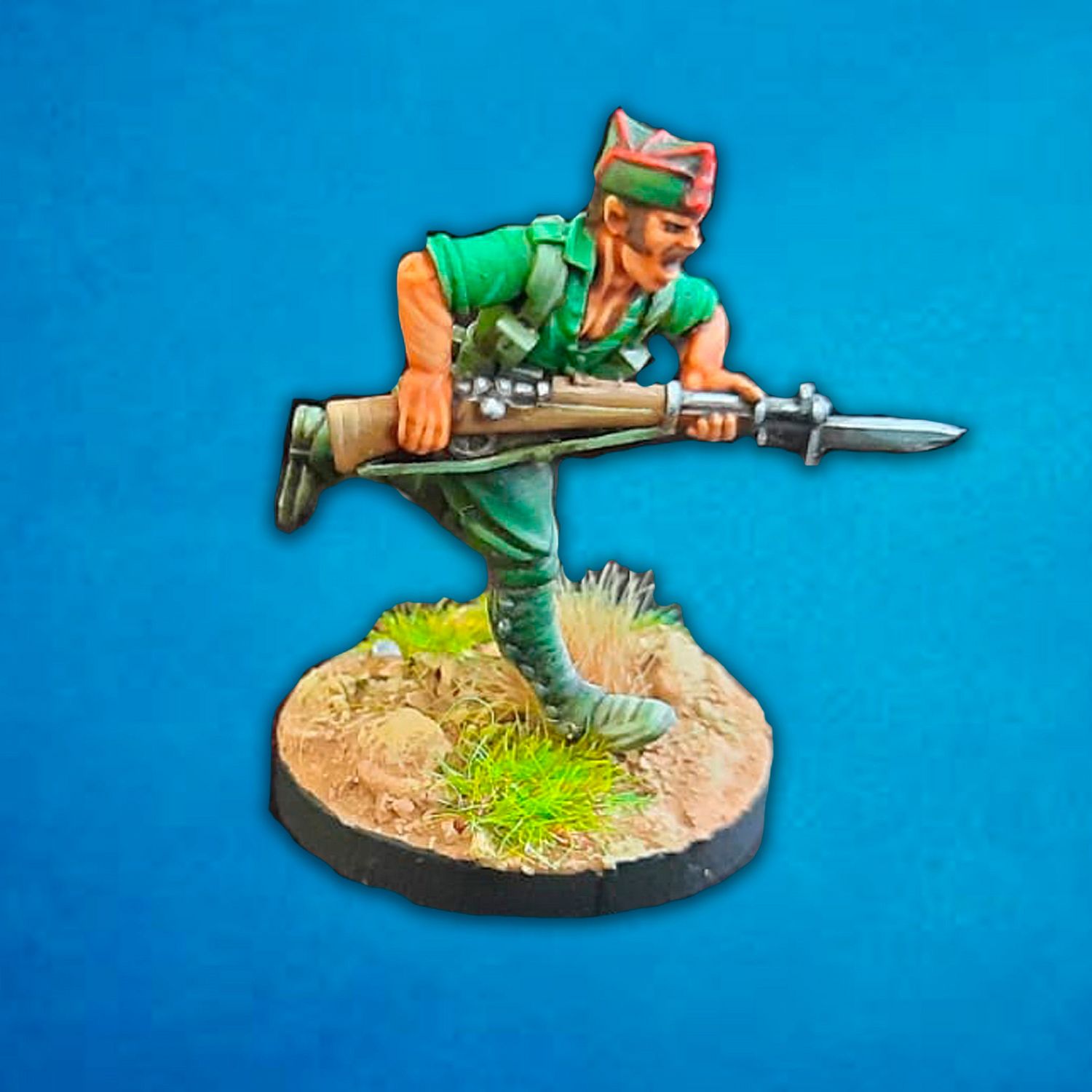 Contiene 6 miniaturas de legionarios en camisa y chapiri avanzando. Miniaturas en metal escala 28 milímetros heroico. Las miniaturas se venden sin pintar y sin montar en caso de no ser miniaturas de una sola pieza. Peanas no incluidas.