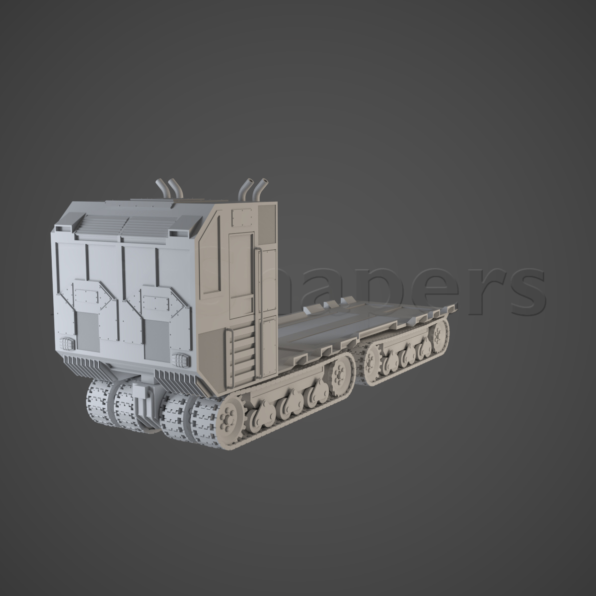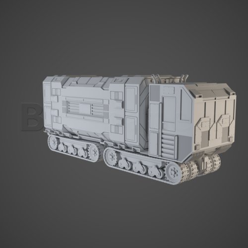 Container carrier truck on track, with 5" and 6" containers. Multipart kit for better printing and easier painting.