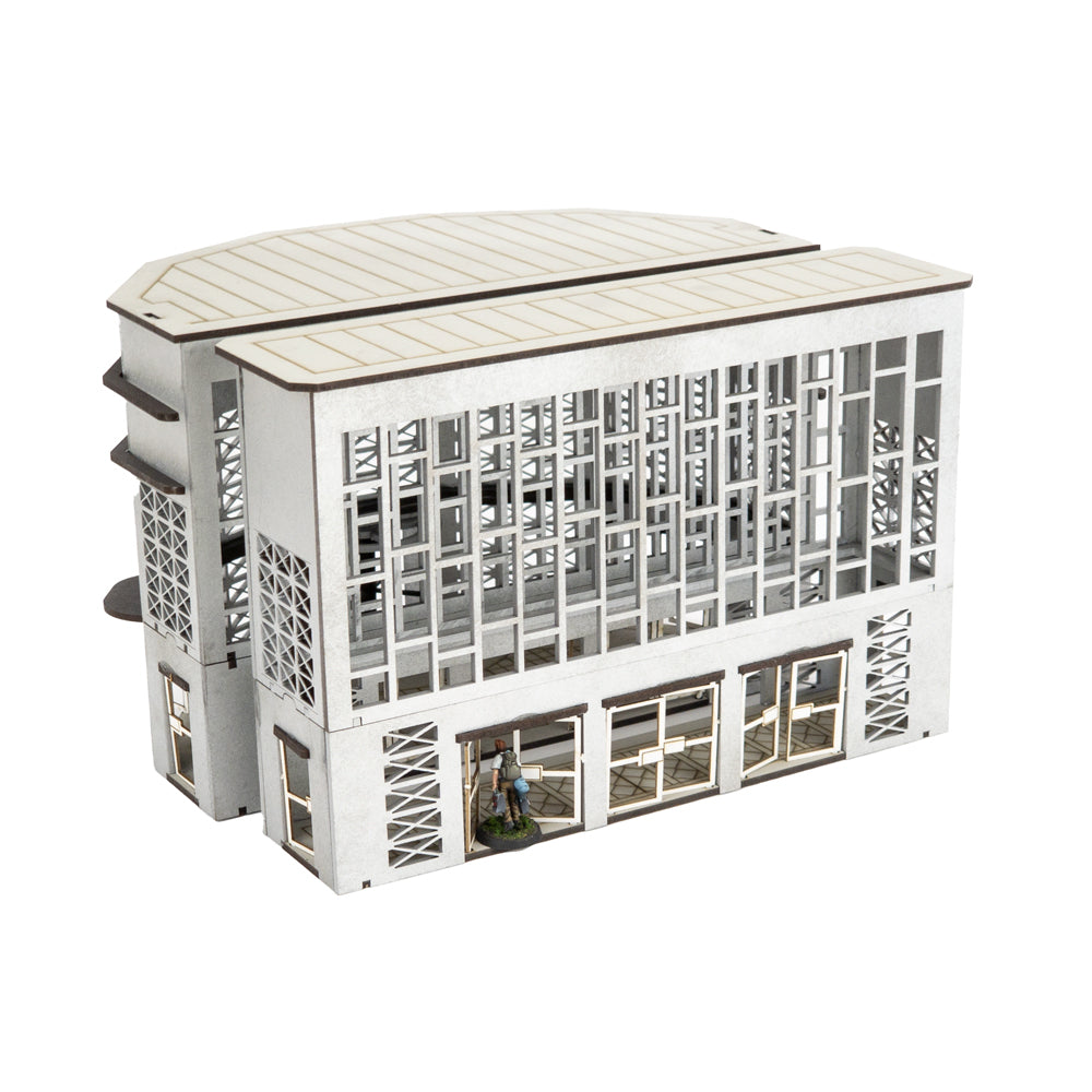 The Northwood Mall is a 100% pre-painted modular kit that is designed to build out gaming tables with large buildings (Mall, office, hotel, hospital etc) Each kit is designed to work with all the other components to make this process as simple and quick as possible. These kits are intentionally designed to be simple and very fast to build.