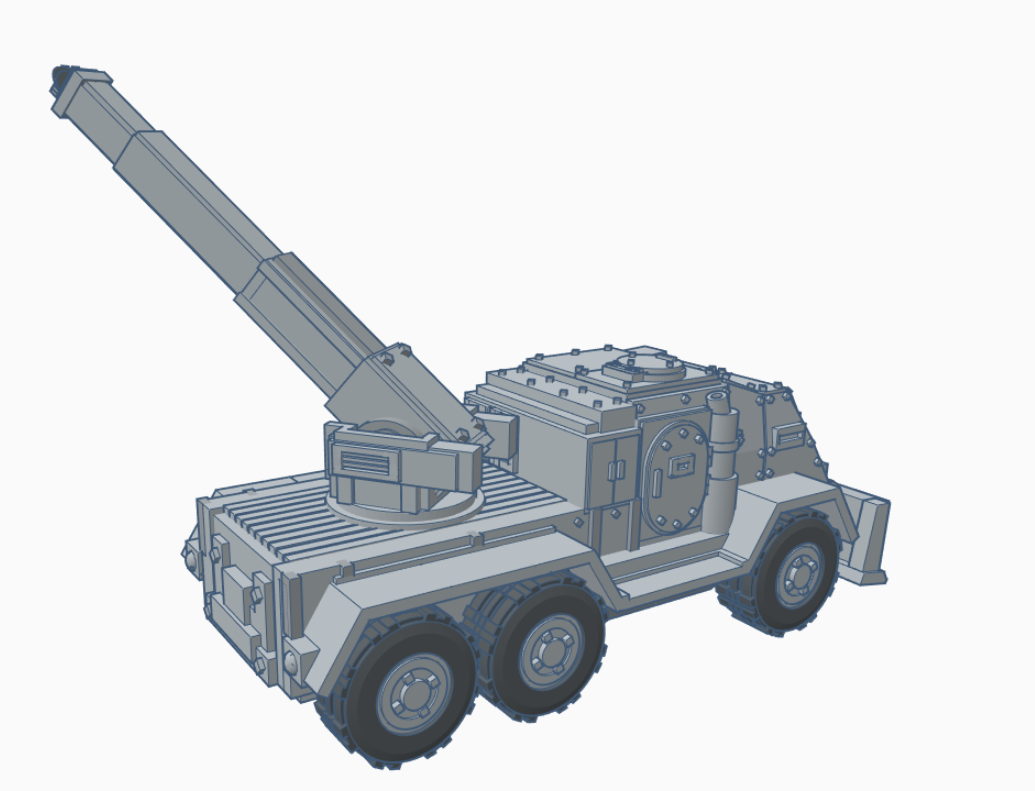 The Recovery Truck comes with an optional dozer blade for pushing obstacles out of it's path and the crane can either be built retracted or extended.