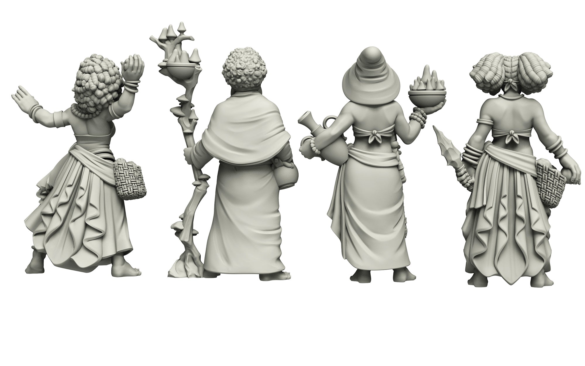 Sculpted by Ari Níelsson. The set contains four figures, cast in white metal and supplied unpainted and each with a round 25mm plastic slottabase