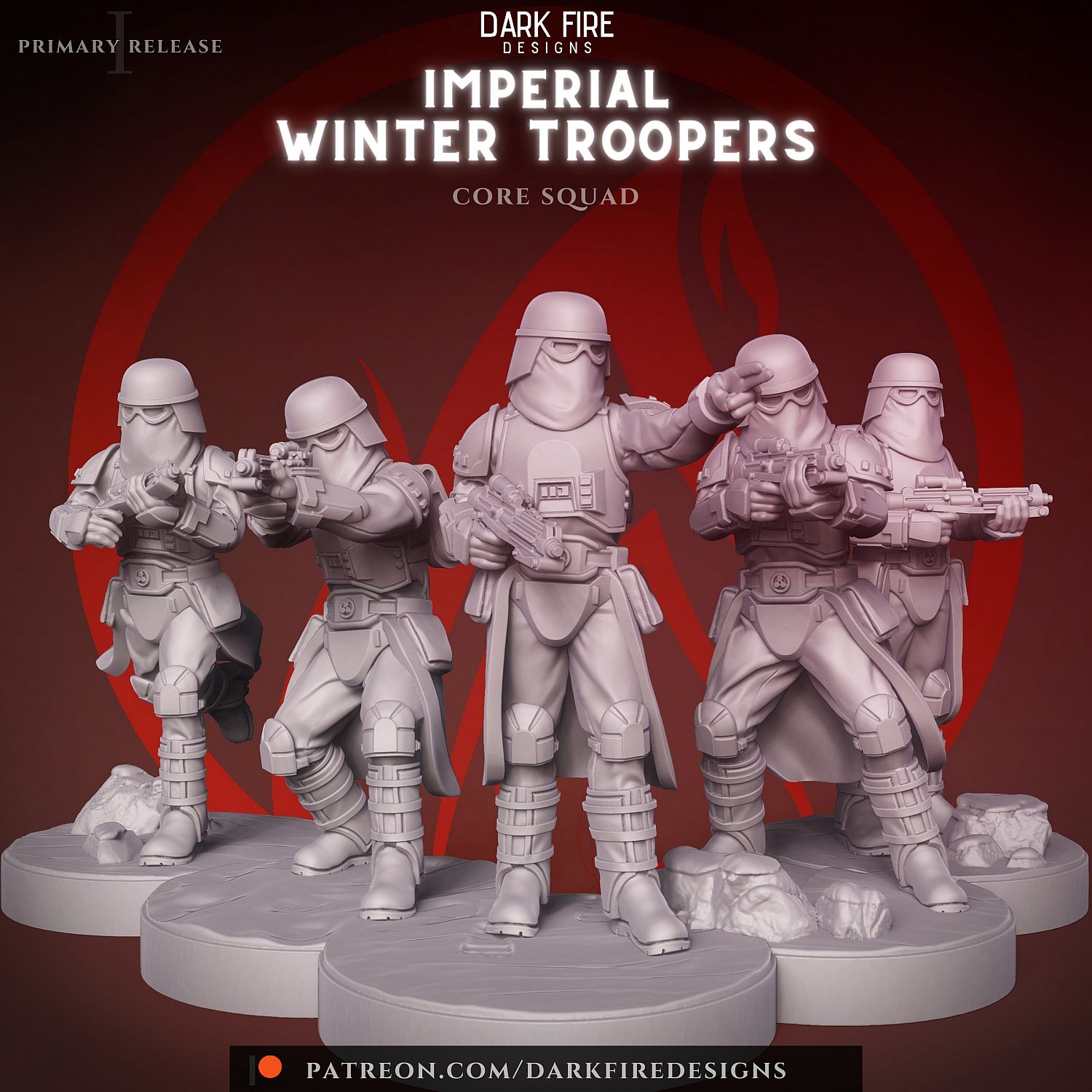 Introducing the elite Imperial Winter Troops, trained and equipped to thrive in the most frigid and inhospitable conditions. These soldiers are the embodiment of relentless dedication, marching through the harshest environments to ensure the regime's iron grip on the galaxy. Outfitted with specialized armor and weaponry, the Imperial Winter Troops are a chilling sight to any who dare resist their advance.