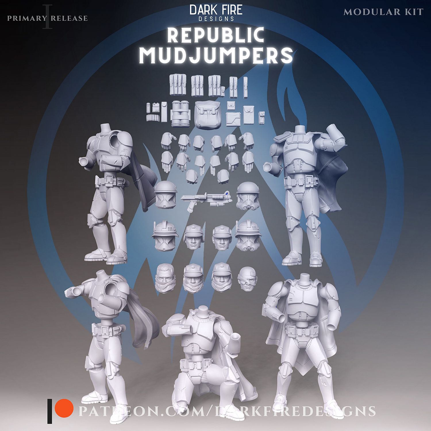 The Republic Mud Jumpers digital STL model kit from Dark Fire Designs is your gateway to a new level of creativity and customization. Originally introduced as a primary release in the November 2023 Patreon release, this kit is a must-have for tabletop gaming enthusiasts, diorama creators, and scale model hobbyists alike. It offers a pre-posed squad designed for effortless assembly and quick painting, making it accessible even to newcomers in the hobby.