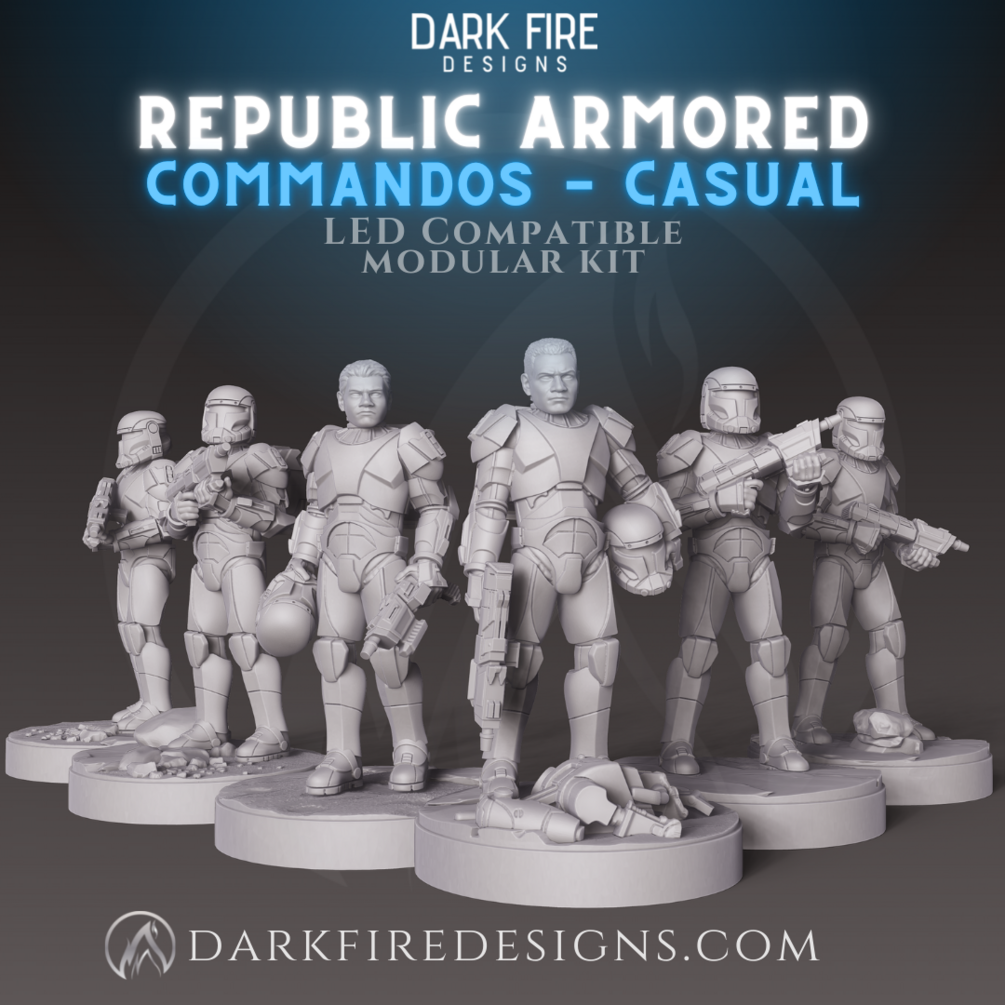 Republic Commandos, are elite troopers of Republic. Drawn from the best stock of troopers from the Republic the troopers selected for the Commando program are trained by the best drill sergeants to become the deadliest soldiers in the galaxy. Often working in close knit squads, Commandos are assigned to carry out special operations that the average trooper couldn't handle. These missions include covert infiltration, sabotage, demolition and assassination, all of which are standard tasks for the Republic Commandos.