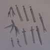 There are 3 arm poses in different levels of extension with the following weapon options: Swords, blades, claws, forks, guns, knives and last but not least a tactical terminal.