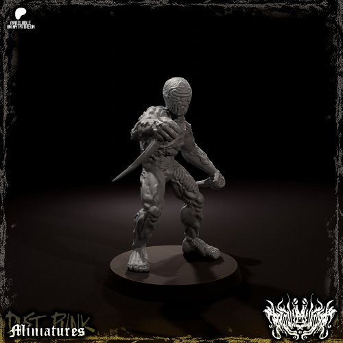 "Forged from eldritch Ichorax, the creatures flaunt a frantic intellect, its sinew and flesh frenzied by a malevolent mind. Driven by a mania for monstrous maneuvers, it menaces the accursed land with macabre precision."