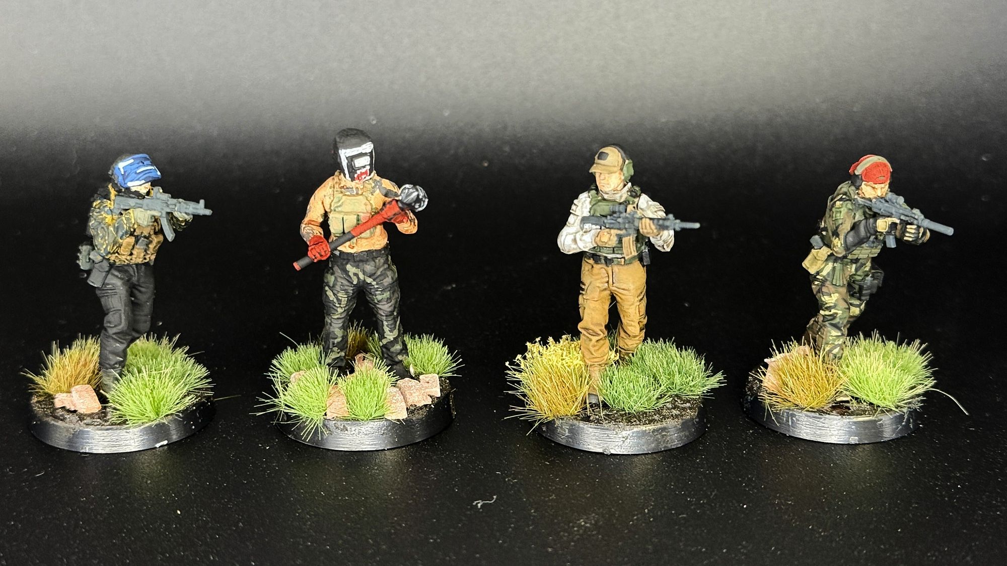 Highly detailed resin miniatures inspired by modern survival shooter aesthetics; Ideal for ultra-modern tabletop and war game settings.