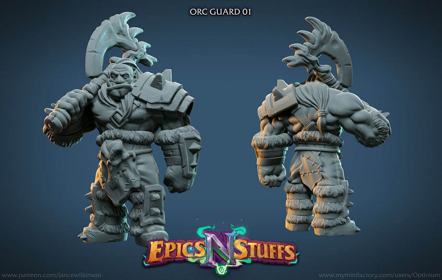 This Orc is a humble guard complete with his trusty axe. He might look imposing with all those spikes and skulls but he is a big sweety at heart.