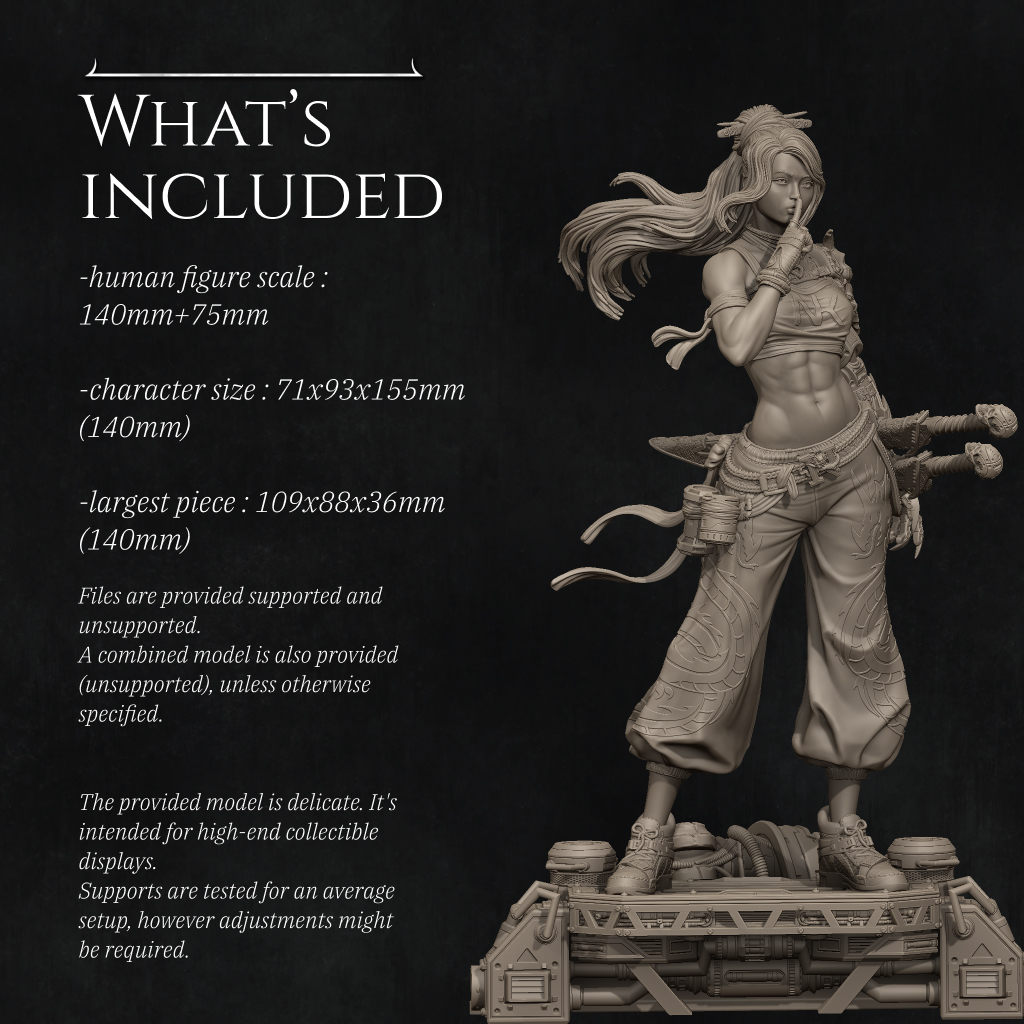 -Printing information: The provided model is delicate. It's intended for high-end collectible displays. Supports are tested for an average setup, however adjustments might be required.
