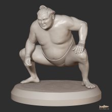 Sumo wrestler model in STL format for 3D printing. Supported and unsupported STL files of the model and pedestal are included. The STL file is sized to 35mm scale; for 28mm scale you should scale it down to 80% of the original size.