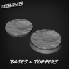 A set of ten presupported 25mm round bases. These bases are hollow with slots for 5mm diameter x 1mm depth magnets on the bottom.