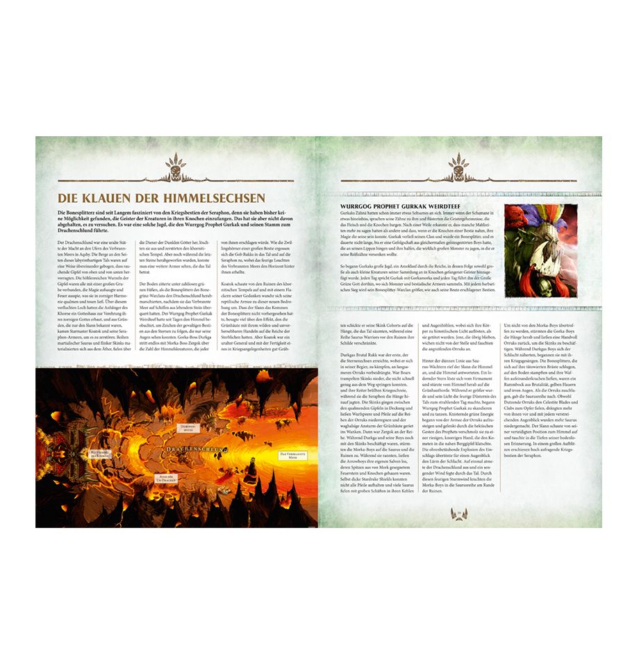 - drei Battleplans, die epische Schlachten beschreiben und zeigen, wie diese wilde Horde von Orruks kämpft;