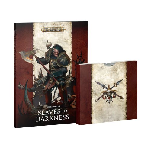 The Slaves to Darkness are champions clad in hellforged armour, fearsome chieftains, and cabalistic sorcerers who lead daemons, monsters, and madmen into battle under the banner of Archaon the Everchosen. Their ranks are swollen by those who turned to the Dark Gods during the Age of Chaos to survive – traitorous murderers all – and each walks the precarious Path to Glory.