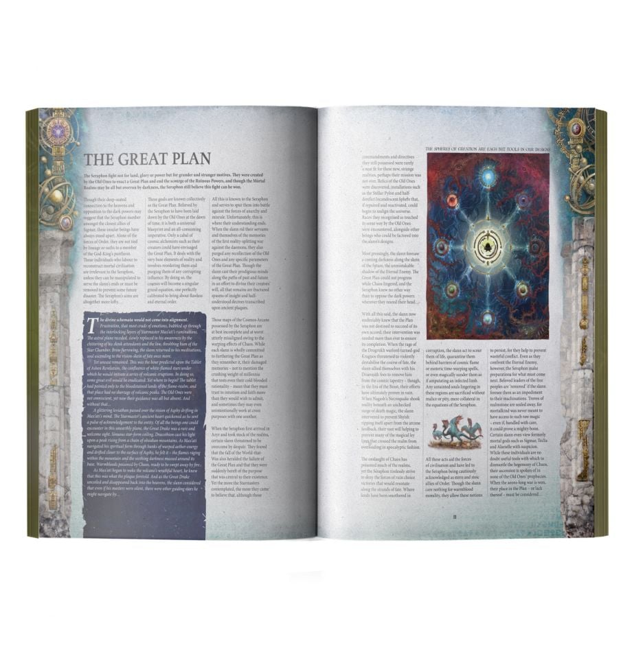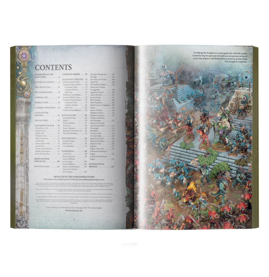 This essential companion contains in-depth lore and inspiring artwork, plus full rules for using the Seraphon in games of Warhammer Age of Sigmar. You'll venture into the cosmic secrets of the astromatrix, discover the many species that make up the Seraphon, and explore the history of their deep-seated hatred for the forces of Chaos.