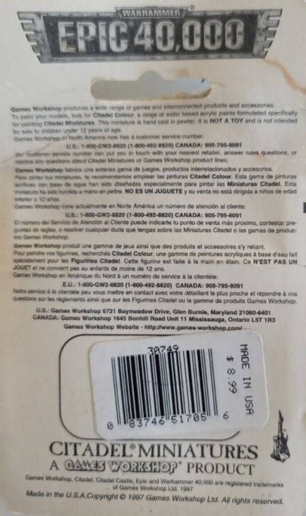 Тип: Miniature Материал: White Metal Released: 1 January 1997 Discontinued: ? Миниатюр в наборе: 3 Масштаб: 6mmScale Calculator Известная цена: $8.99 Упаковка: Blister Как создано: Physical, by hands id: gw-8705n- Short Url:/s/1ZJJWoW!