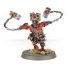 Lunatic murdersmiths who are feared and revered in equal measure, the Wrathmongers are absolute in their fervent devotion to Khorne. Infused with the unnatural energies of daemons, they are the elite of the Chaos tribes and are unstoppable in battle, hurling themselves at their foe with unnatural vigour as their wrath-flails describe brutal, bloody parabolas.