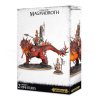 This multi-part plastic kit contains all the components you need in order to assemble an Auric Runesmiter on Magmadroth. Armed with a latch-axe and either a runic iron or forge key, plus fyresteel throwing axes, he stands atop his Magmadroth on a bed of burning coals.The Magmadroth features flame-shaped scales, three crest options, a huge flaming chimney on the saddle and a huge array of additional components - pipes, bundles of axes, a drinking horn and bundles of ancestral jewelry. You can also assemble an Auric Runeson or Auric Runefather to accompany the Runesmiter on foot!