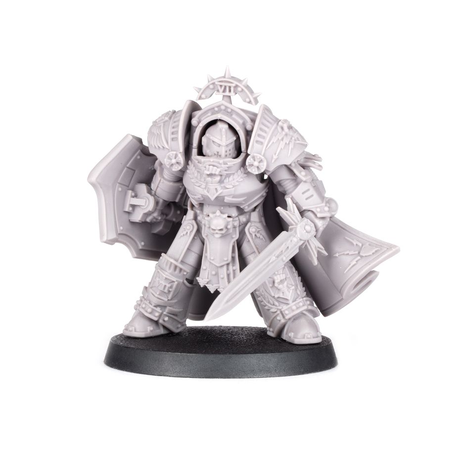 This multipart resin kit builds one Legion Tartaros Praetor, a heavily-armoured commander for the Imperial Fists Legion. This detailed miniature is an update to the classic Imperial Fists Legion Tartaros Praetor design. Clad in ornate Tartaros Terminator armour and adorned with a host of details testifying to his standing within the Templar Brethren, he's ready to take on all comers, wielding a massive power sword along with a richly-decorated Vigil storm shield, large enough to protect even a suit of Terminator armour.
