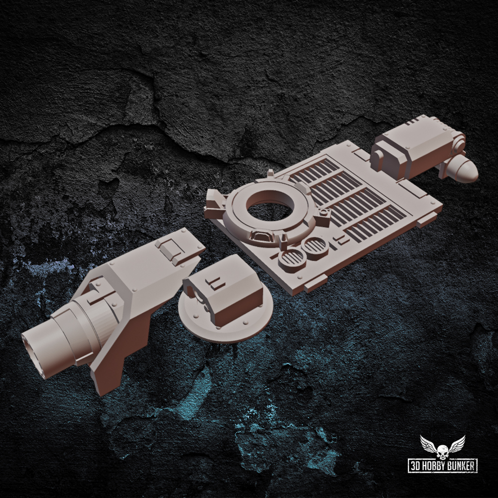 I designed a destroyer cannon and top plate with crane to upgrade my earlier APC model into a full-fledged siege platform. The files are optimized for FDM printing. Tank chassis shown in the photos and Screenshots is not included.