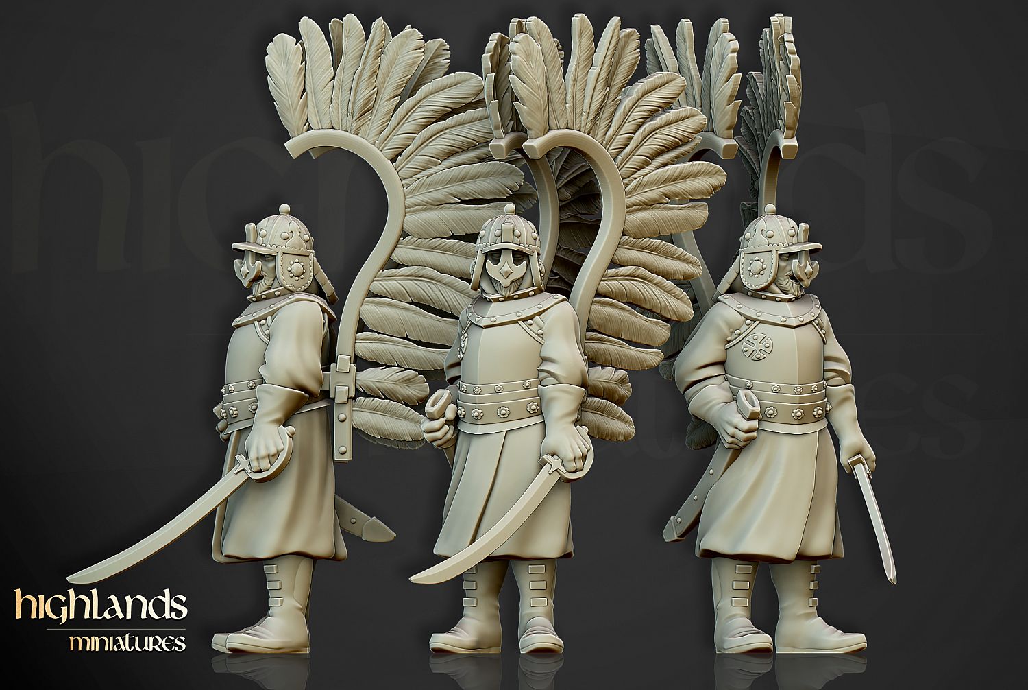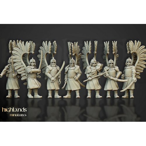 Here you have Winged Hussars on Foot Unit from Highlands Miniatures October 2021 Release. This Winged Hussars on Foot Unit is composed of: