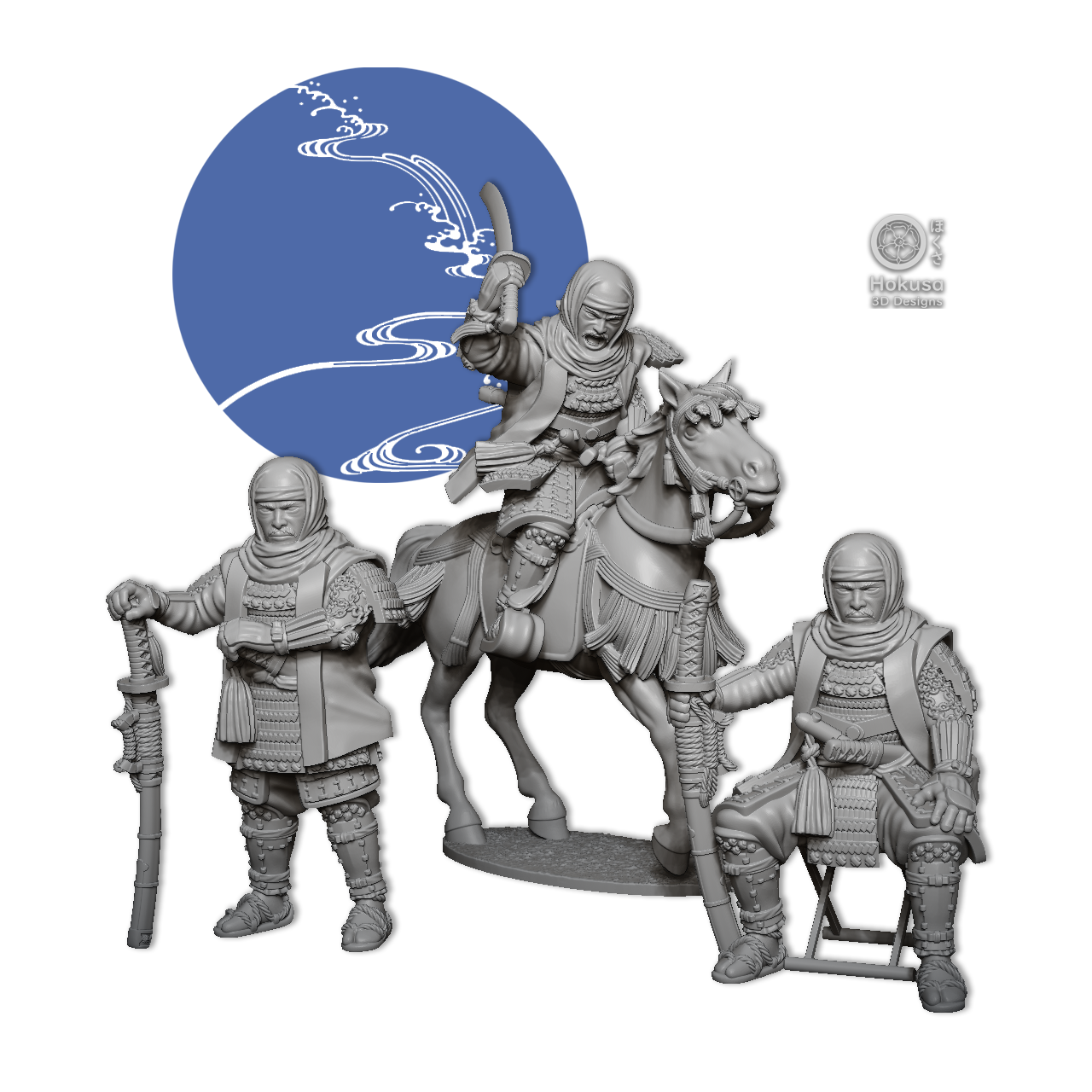This pack contains the famous Daimyo Uesugi Kenshin, x6 minis (with and without head cowl), x1 horses as well as heads and bases. The Models are made for the 28mm scale, but can be scaled up and down (Might need new supports).