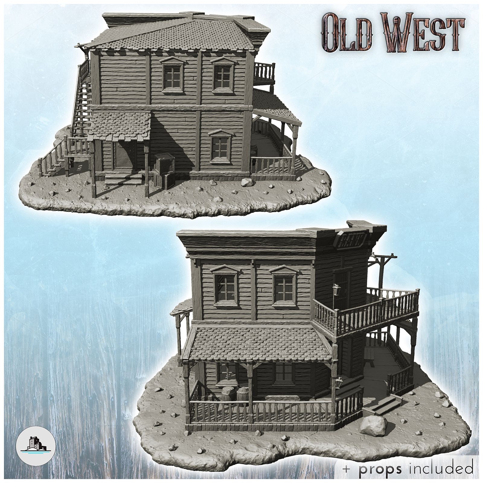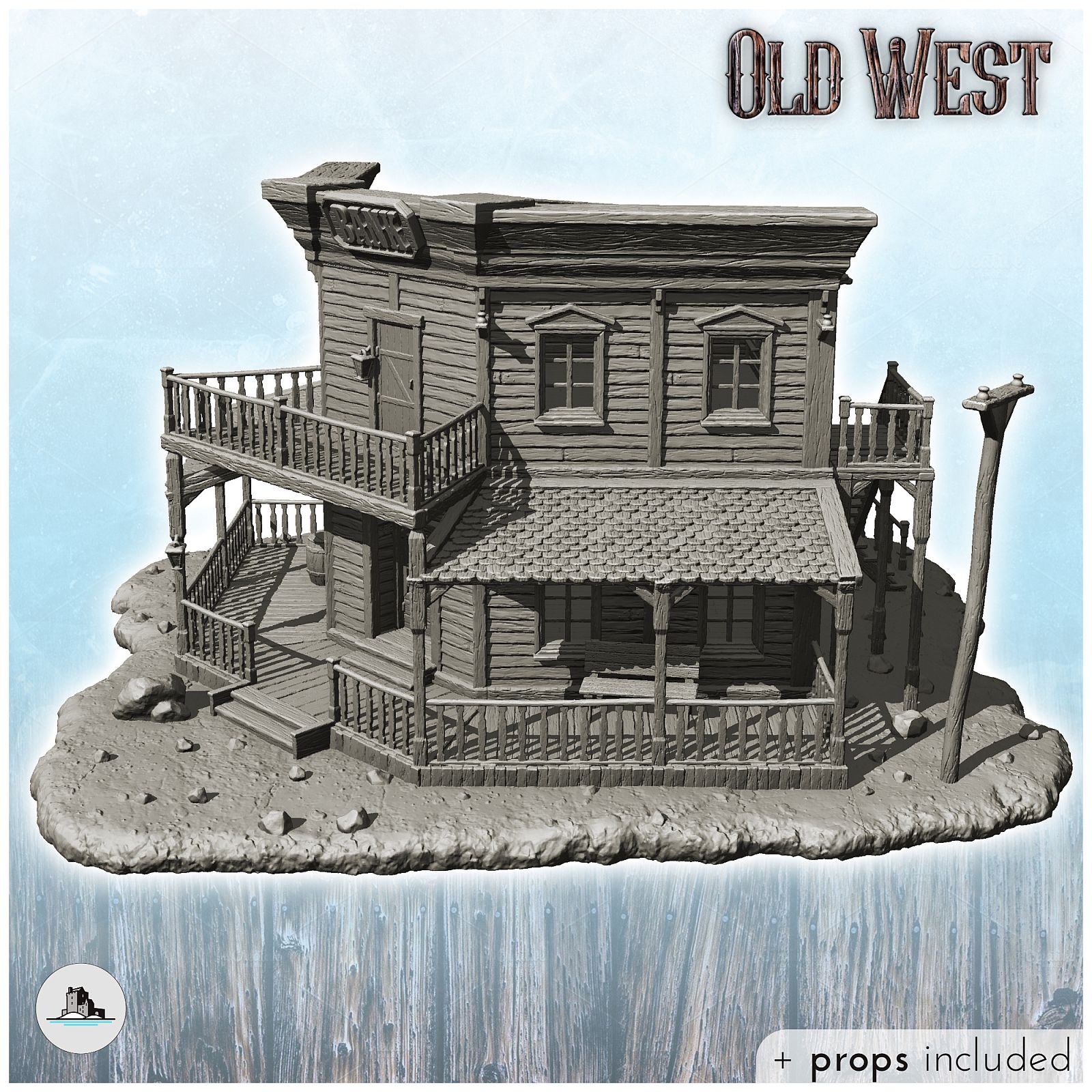 Western Bank Building In Corner With Balcony (+ Props) (25) - Cowboy Usa America Acw American Civil War History Historical