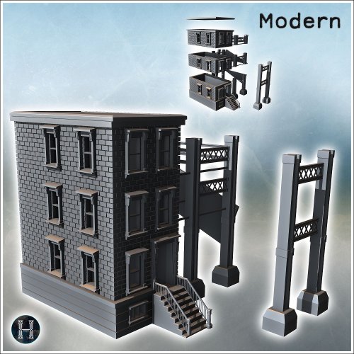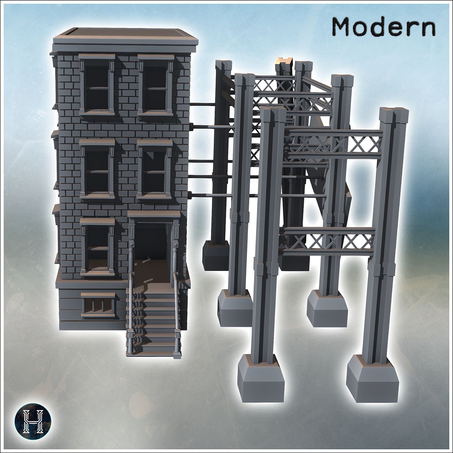 Modern Brick Building With Floors, Access Stairs, And Metal Beam Structure (7) - Modern Ww2 Ww1 World War Diaroma Wargaming Rpg Mini Hobby
