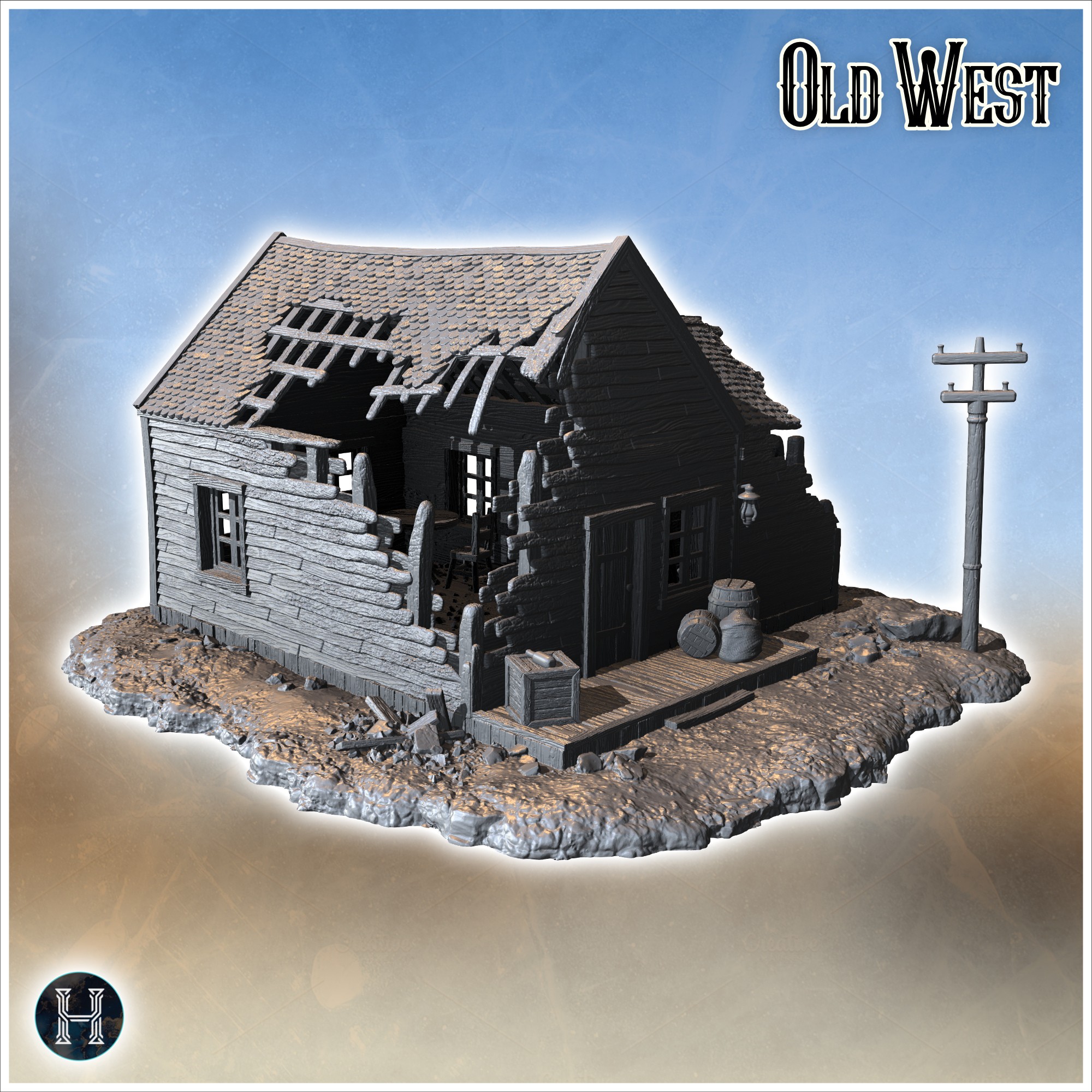 Wooden Cabin With Partially Collapsed Roof, Scattered Debris, Detailed Wooden Planks, And Worn Surroundings (30) - Cowboy Usa America Acw American Civil War History Historical