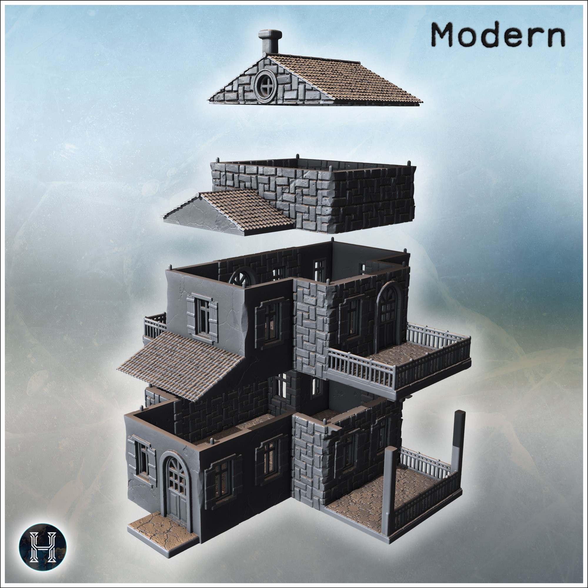 The file is divided in 4 parts (you can see how on the pictures). The interior of the building is fully playable. The model is provided in 28mm (1:56e) but it can be easily adapted to your scale :