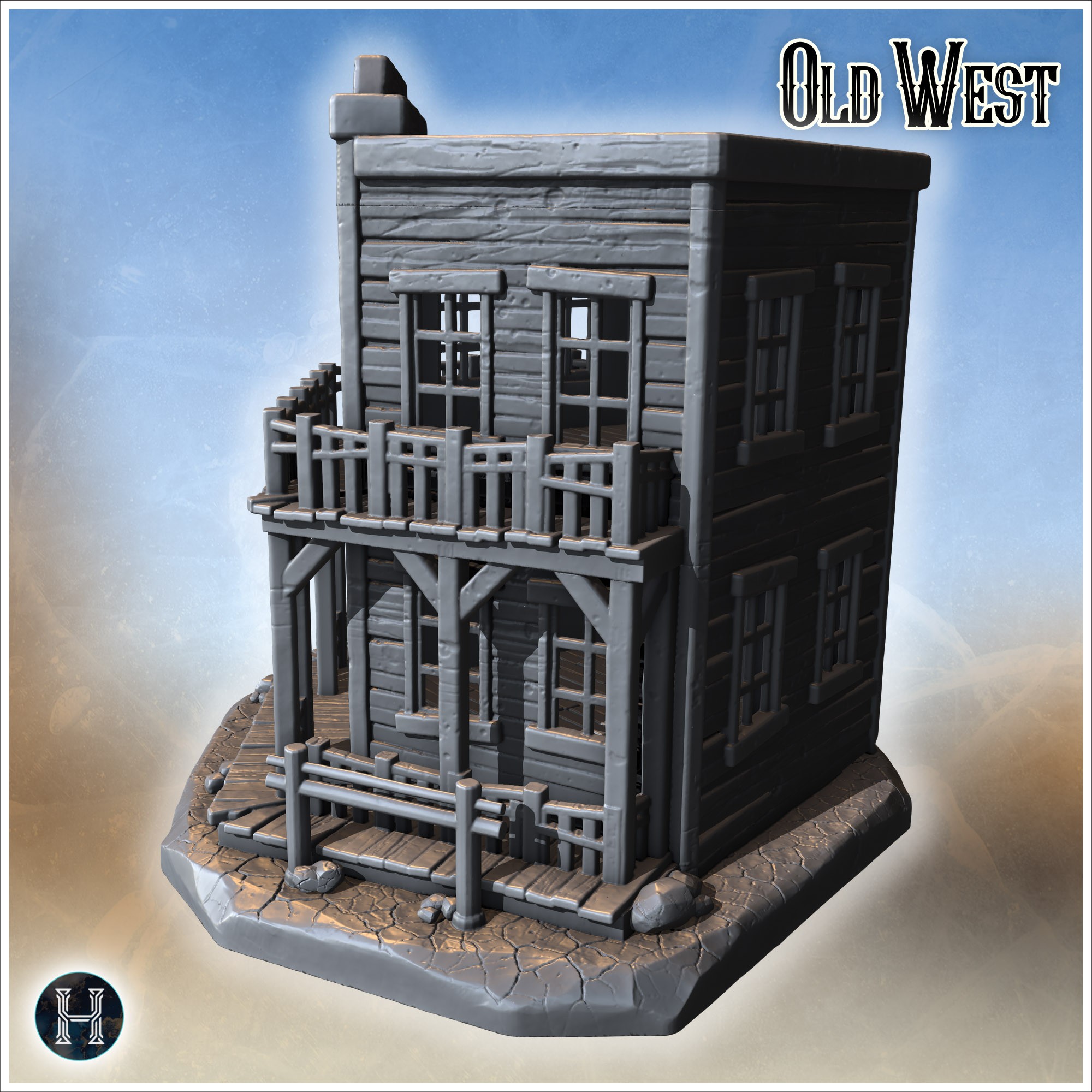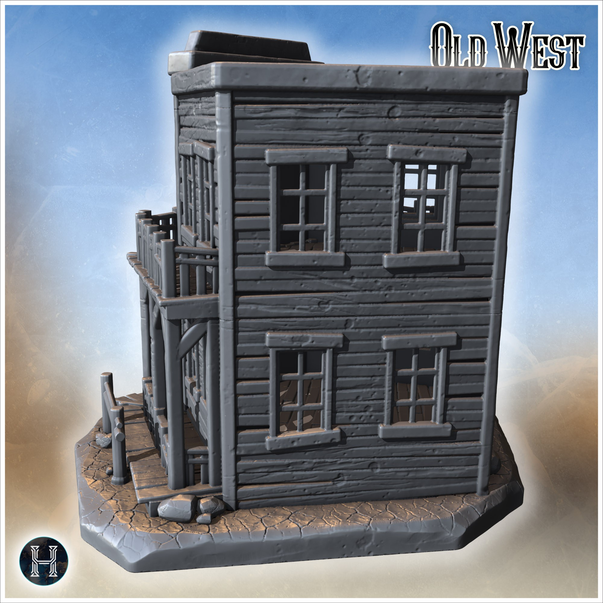 Old Saloon Building Bar With Front Porch, Balcony, Windows And Wooden Sidewalk Base (2) - Cowboy Usa America Acw American Civil War History Historical