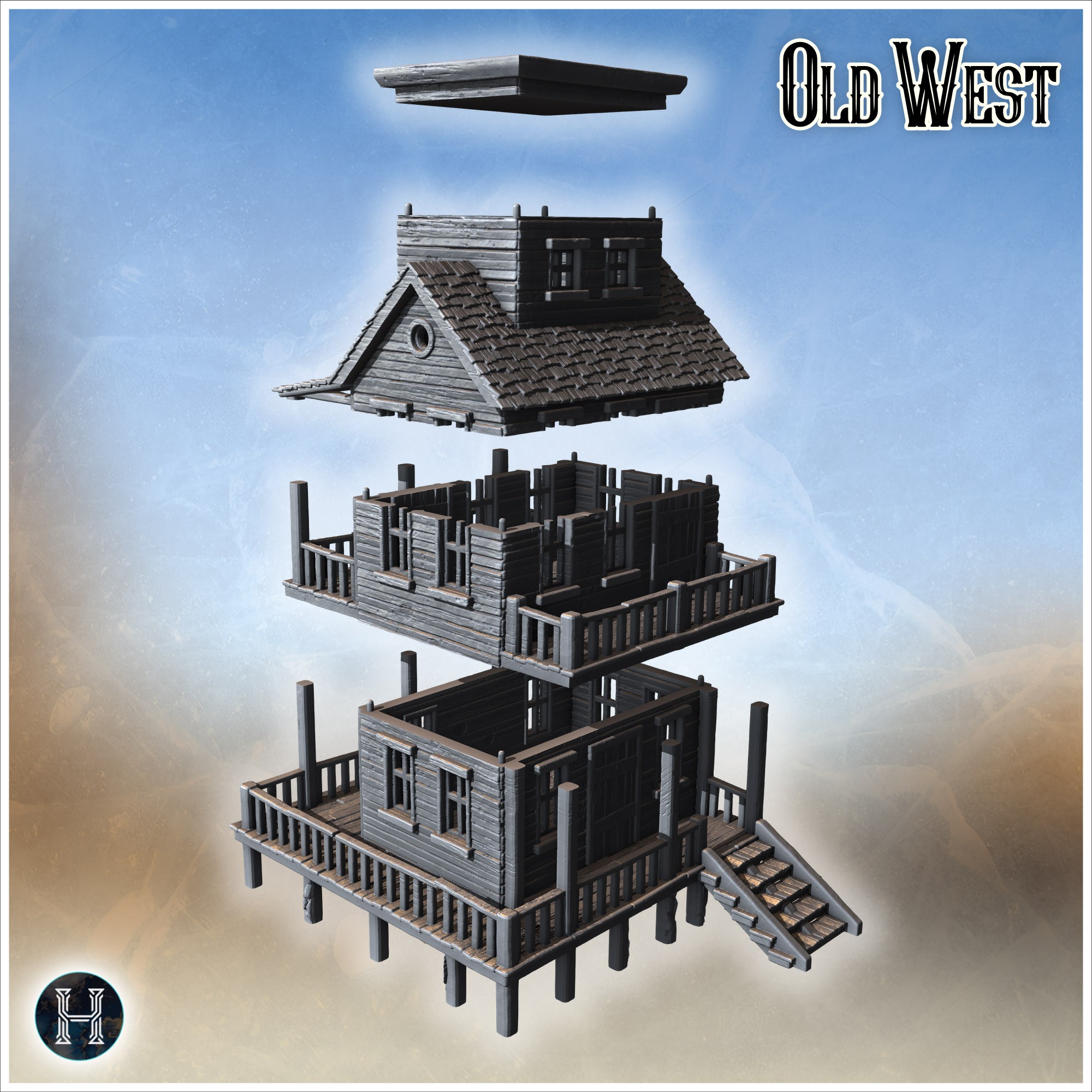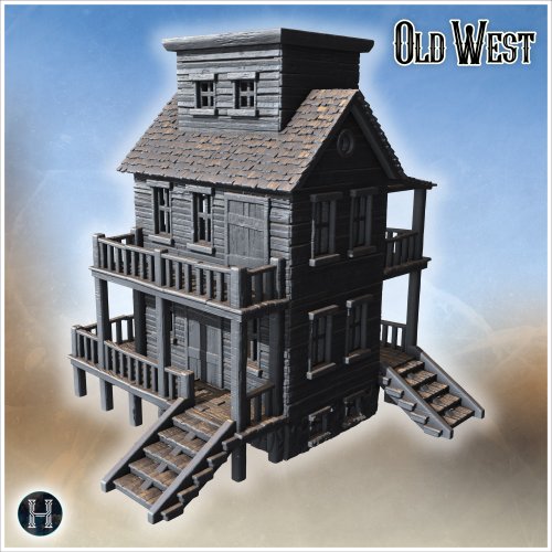 Two-Story House With Wooden Balconies, Double Staircases And Lookout Tower Section (16) - Cowboy Usa America Acw American Civil War History Historical