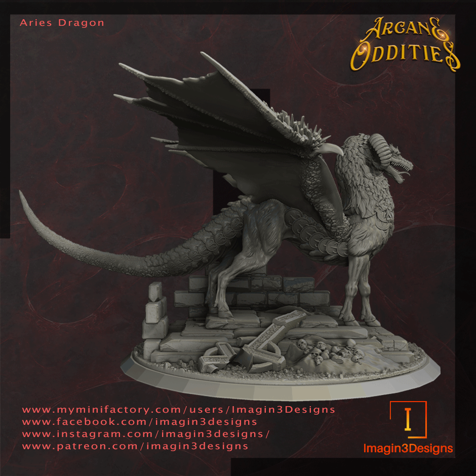 The Aries Dragon is a fiery titan of aggression and dominance, its body bearing the strength of a war-ram fused with draconic might. Thick muscle coils beneath scales that glow like molten stone, and its vast wings carry the heat of a forge wherever it flies. This dragon is infamous for charging headlong into battle, crushing fortifications with brute force and scorching the earth with its blazing breath. Driven by instinct and unyielding aggression, the Aries Dragon is chaos incarnate, a living storm of fire and wrath that few armies can withstand.