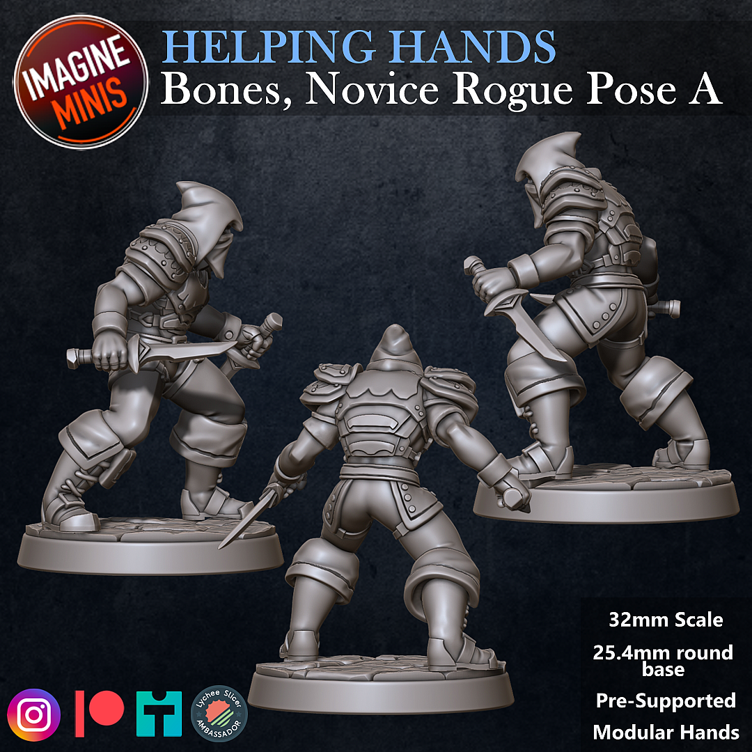 Helping Hands is a theme chosen by my Patreon Community. Bones is a 32mm scale miniature compatible with a 25.4mm (1 Inch) round base.