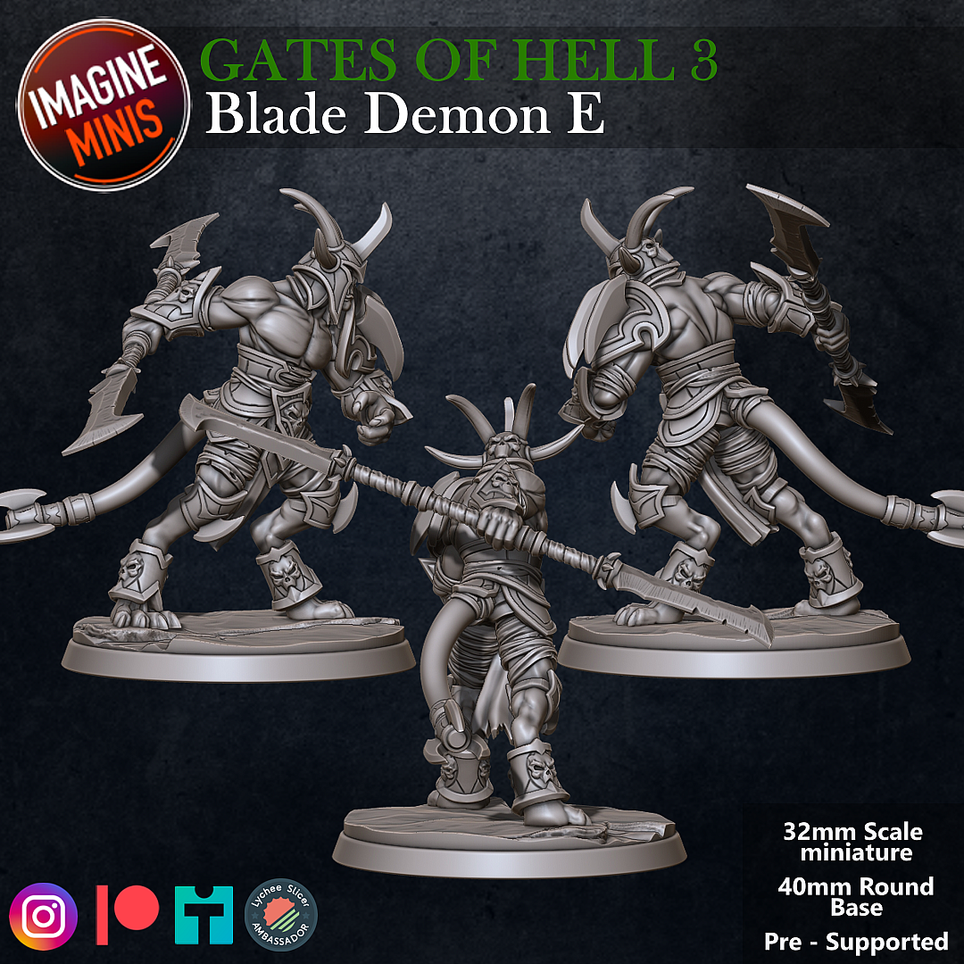 Gates of Hell is a theme chosen by my Patreon Community. Each Blade Demon is a 32mm scale miniature, compatible with a 40mm round base.